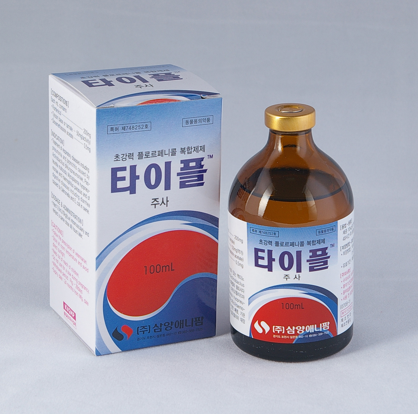 타이플TM 주는 타이로신(tylosin)과 플로르페니콜(florfenicol)의 이상적인 배합으로 기존 일반제제보다 약효가 2배나 오래 지속되는 특징을 가진 제품으로 특허도 획득 하였다. 호흡기 균주인 액티노바실러스 플로르뉴모니아(Actinobacilus pleuro-pneumoniae), 파스튜렐라 물토시다(Pasteurella multocida), 마이코플라즈마 하이오뉴모니아(Mycoplasma hyopneumoniae), 헤모필루스 파라스위스(Haemophilus parasuis) 와 살모넬라(Salmonella spp.), 대장균(E. coli) 등의 소화기 질병 균주에 높은 항균 효력이 있어 이로 인한 폐렴, 기관지염 등의 호흡기질병 및 설사 등의 소화기 치료에 뛰어난 효과를 보이는 양돈 전용 호흡기 및 소화기 질병 치료제이다.