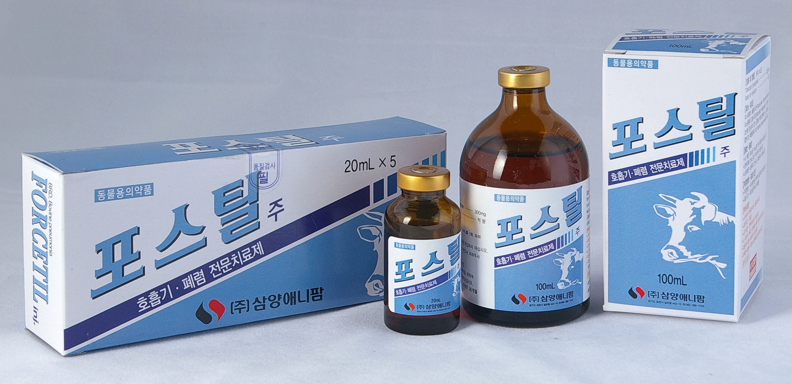‘포스틸 주’(사진중)는 축우의 초기 호흡기 질병의 최고 선택 약제로 추천되는 약물로, 마크로라이드계 합성 항균제인 광범위 항균제 틸미코신(Tilmicosin)을 함유한 제제로 파스튜렐라 헤몰리티카, 파스튜렐라 멀토시다와 같은 소 호흡기질병(BRD) 및 폐렴(Bovine pneumonia)의 원인균에 대한 항균력이 특히 강화된 제품이다. 단 1회의 소량(1mL/30kg) 주사로 치료가 가능하기에 가축에 대한 스트레스를 감소시키고 축주의 수고를 덜 수 있어 경제적인 제품으로 인식되고 있다.