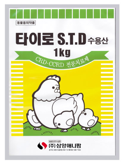 양계의 만성호흡기병(CRD), 복합만성호흡기병(CCRD) 전문 치료제인 ‘타이로에스티디 수용산’(사진우)은 타이로신(Tylosin)과 강화 설파제(Sulfamethoxypyridazine + Trimethoprim)가 이상적으로 배합되어 있어 뛰어난 상승작용을 나타낸다. 뿐만 아니라, 소염제와 진해제가 첨가되어 있어 호흡기 증상을 완화시켜 빠른 치료 효과를 볼 수 있다.